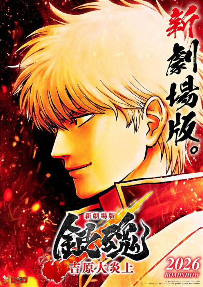 10月10日,《银魂》完全新作剧场版动画《银魂-吉原大炎上-》正式公布档期,本作将于2026年2月13日在日本上映。目前官方公布了全新的宣传图和声优阵容。