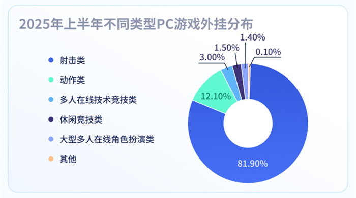 IT之家从报告获悉,2025 年上半年,随着游戏款数和游戏玩家量的增加,游戏黑产愈发活跃,腾讯游戏安全监测到的 PC 端游戏外挂数同比 2024 年上半年,呈现剧增态势,同比增长了 238.2%,达到 61465 款,达到历史之最(以上外挂均在腾讯游戏安全 ACE 监测和打击范围以内)。