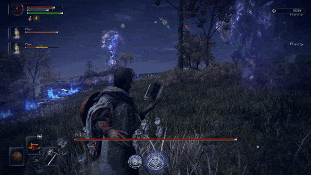 在试玩中,我们还尝试攻略了两次全新黑夜王“安定者们”,注意是复数。他们就是宣传片中出现的七位一同出现的集群型 Boss,一次登场 7 名。安定者的主要攻击方式除了近战外,还有一种蓄力后的圆形范围攻击,建议及时躲避。在血条打到约 7 成、首次击败全部安定者后,他们的头领还会释放群体复活,复活后的安定者攻击欲望更强,动作更快,并且配合得也更好了,还会追加一个将玩家钉在十字架兵造成大量伤害的新技能 —— 不客气点的说就是会像疯狗一样追着玩家猛锤,我很难想象单人模式该怎么打。试玩时我们三人将这群 Boss 分别引导了很远,方便各自击破,但危险之处在于不小心战死了不太好救,毕竟太远。