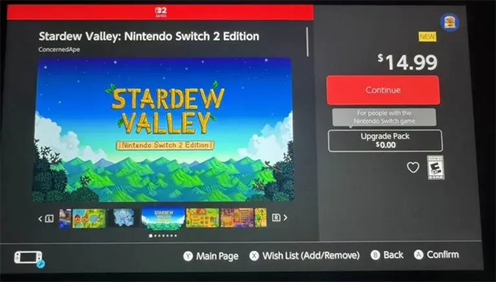 此次未经预告的发布最初由知名消息人士Wario64分享,他同时确认升级流程仅能在Switch 2主机上直接操作时可见。尽管开发者ConcernedApe(埃里克·巴龙)此前仅确认Switch 2升级版将于2025年秋季发布,未曾公布具体日期,但此次上线时间恰逢圣诞假期,算是为期待已久的玩家们送上了一份节日惊喜。