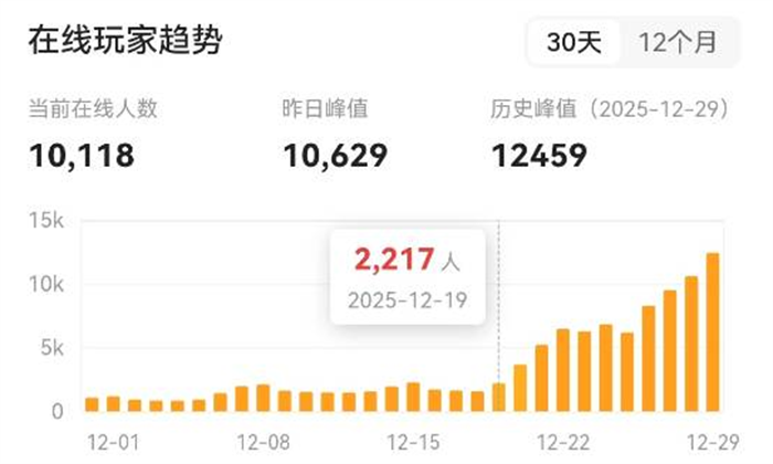 具体数据显示,在12月19日电影上映及DLC发售当天,游戏的Steam最高同时在线人数仅为2217人。而到了12月29日,该数字已飙升至12459人,创造了游戏发售以来的历史最高记录,增长幅度达到约六倍。这一飙升直观反映了跨媒体内容发布对游戏活跃度的强力拉动。