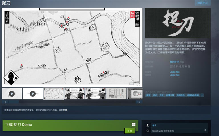 历史演义跑团类游戏《捉刀》现已在Steam上线,获得玩家“特别好评”。官方还推出了试玩DEMO,感兴趣的玩家可以先下载这个体验版尝鲜。